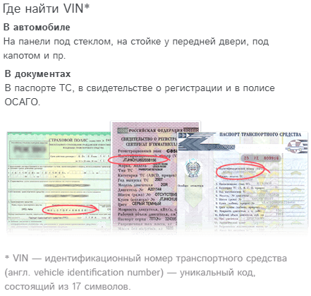 по ВИН коду и номеру